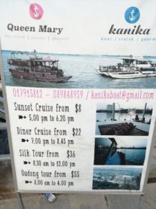 今回はプノンペンに流れているトンレサップ川とメコン川でボートクルーズがあったのでボートクルーズに乗ってきました。