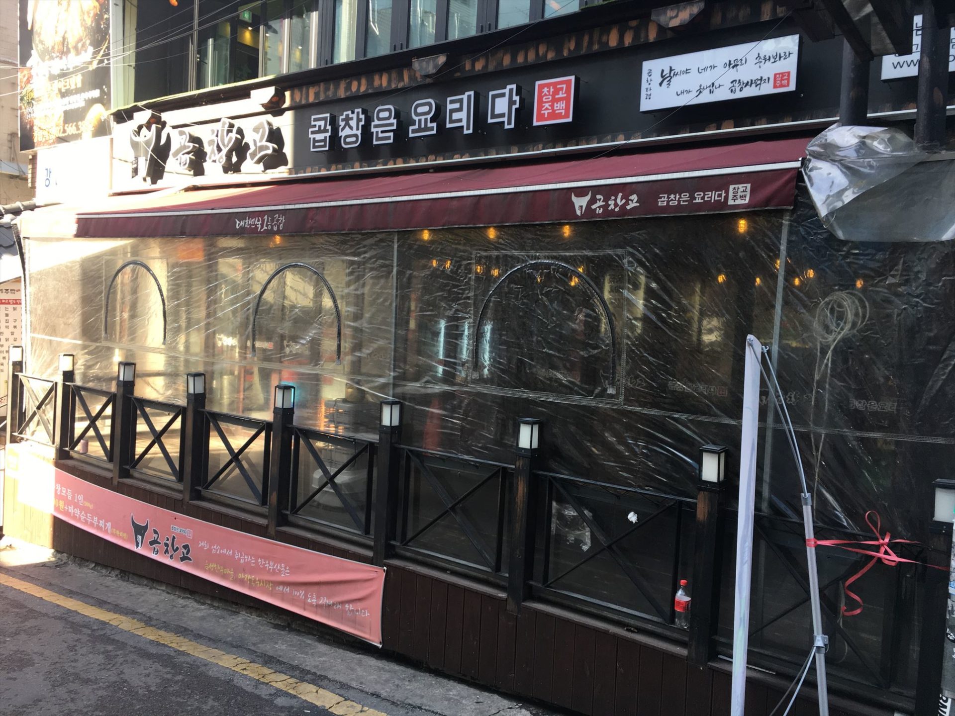 まず最初に見つけたお店がただの飲食店ですが、このビニールで壁を作ってる感じが韓国っぽいです。