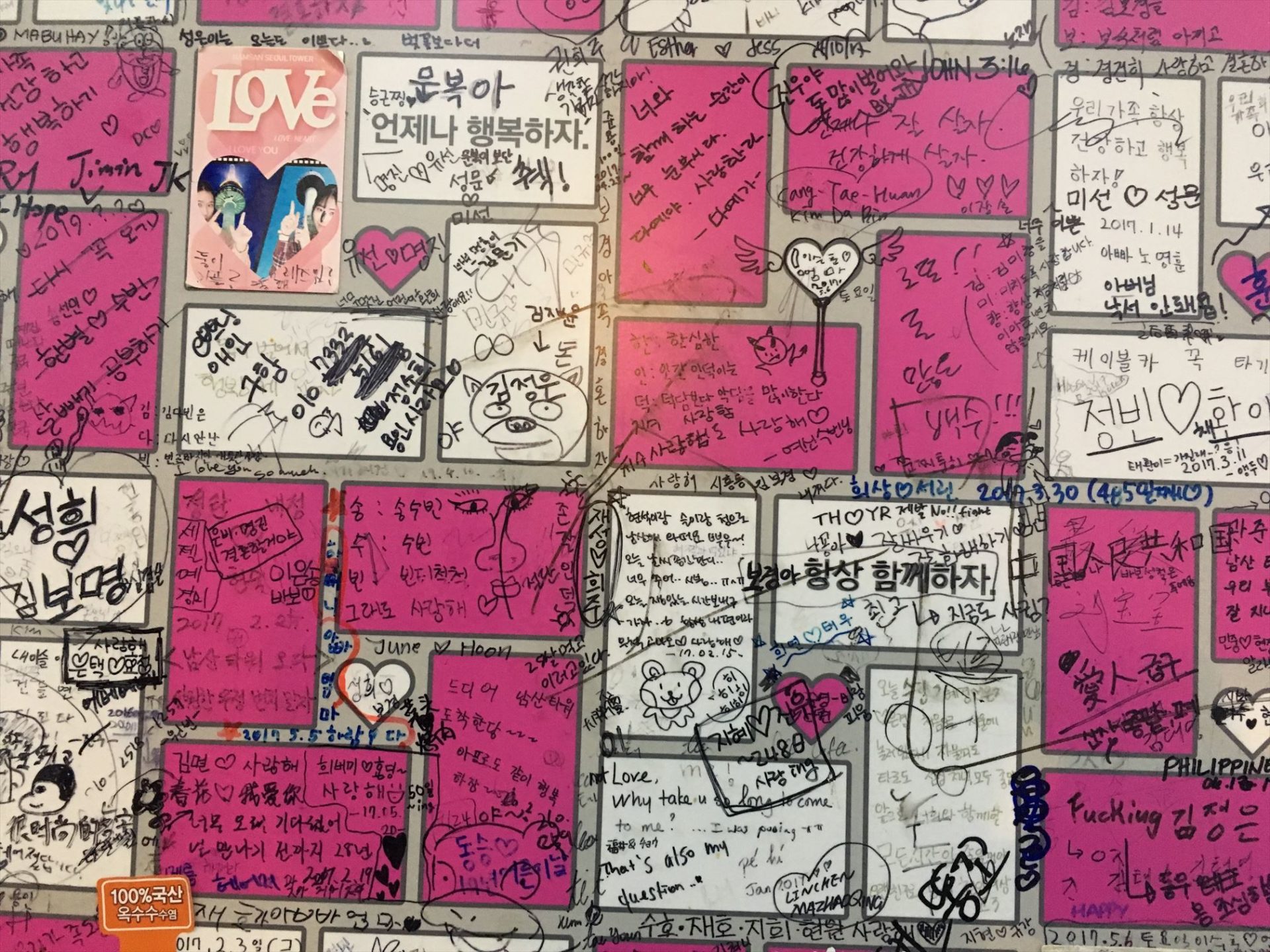 トッポギを食べながら座っていると、目の前の壁は落書きでいっぱいでした。