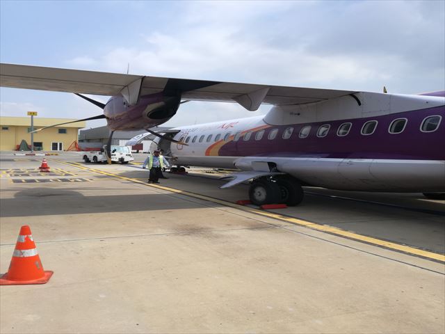 そこから歩いて到着ゲートまで行きます。まあ、歩いてすぐなので特に問題ないですが、飛行機のまじかを歩いていくのは少し新鮮です。