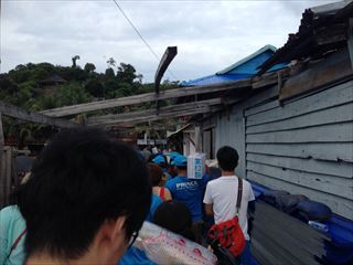 のは朝8時。それでも同じ船からたくさんの人が降りてきます。