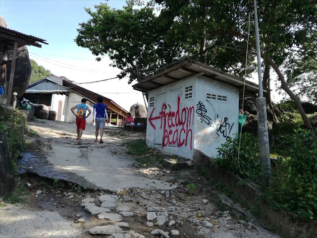 そんなこんなで、結構急な階段を下っていくとフリーダムビーチにたどり着きます。